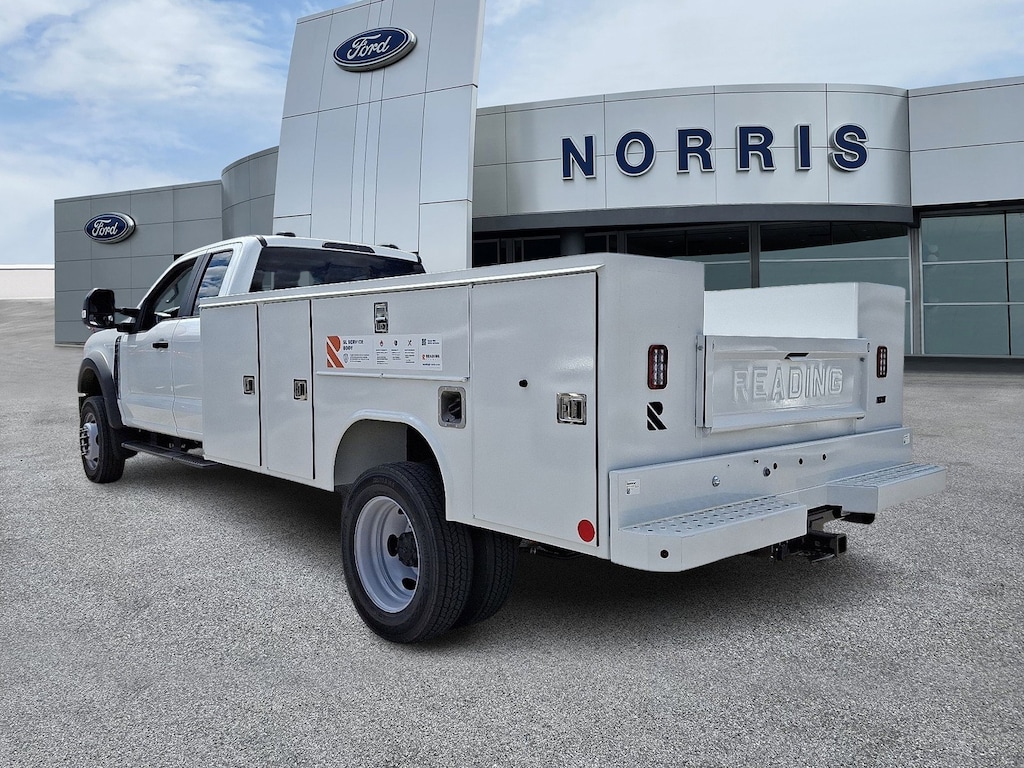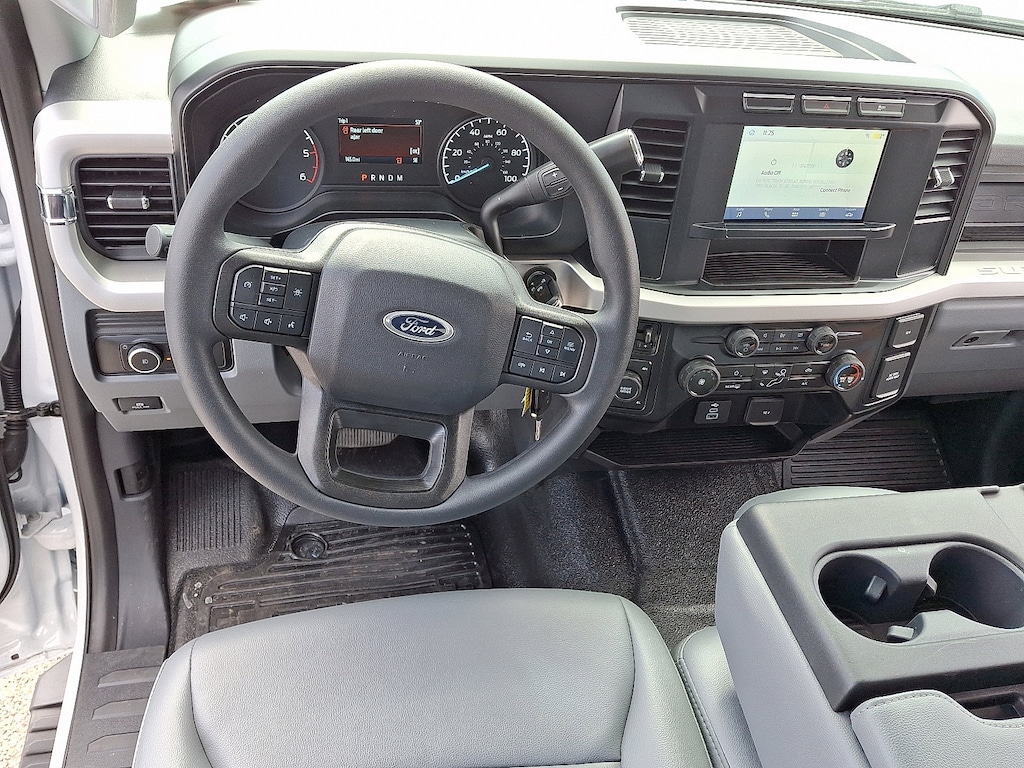 Check out all these great options on this vehicle: GVWR: 16,500 lb Payload Package, Low Deflection Package, Order Code 650A, Snow Plow Prep Package, XL Chrome Package (Bright Grille, Chrome Front Bumper, Halogen Fog Lamps, Power Sliding Rear Glass, Rear Window Defroster, and Remote Start), 120V/400W Outlet, 4-Wheel Disc Brakes, 4.88 Axle Ratio, 410 Amp Dual Alternators, 6 Speakers, ABS brakes, Air Conditioning, AM/FM radio, Brake assist, Compass, Delay-off headlights, Dual 68 AH/65 AGM Battery, Dual front impact airbags, Dual front side impact airbags, Dual rear wheels, Emergency communication system: SYNC 4 911 Assist, Exterior Backup Alarm (Pre-Installed), Front anti-roll bar, Front Center Armrest w/Storage, Front License Plate Bracket, Front reading lights, Fully automatic headlights, HD Vinyl 40/20/40 Split Bench Seat, Heated door mirrors, Illuminated entry, Limited Slip w/4.88 Axle Ratio, Outside temperature display, Overhead airbag, Overhead console, Panic alarm, Passenger cancellable airbag, Passenger vanity mirror, Platform Running Boards, Power door mirrors, Power steering, Power windows, Rear anti-roll bar, Remote keyless entry, Speed control, Split folding rear seat, Steering wheel mounted audio controls, SYNC 4 Communications & Entertainment System, Tachometer, Telescoping steering wheel, Tilt steering wheel, Traction control, Trip computer, Turn signal indicator mirrors, Variably intermittent wipers, and Wheels: 19.5" x 6" Argent Painted Steel.