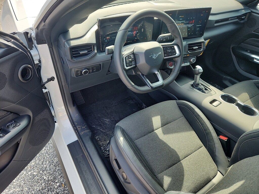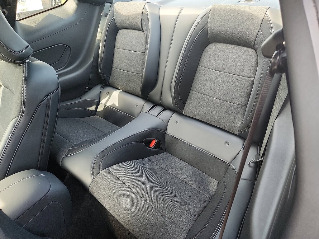 Check out all these great options on this vehicle: Mustang Nite Pony Package (Black Front & Rear Pony Badges, Black Mirror Caps, Headlamps w/Black Bezels, Painted Black Roof, Shadow Black Blade Decklid Spoiler, and Wheels: 19" x 8.5" Ebony Black-Painted Aluminum), 4-Wheel Disc Brakes, ABS brakes, Air Conditioning, Alloy wheels, AM/FM Stereo, Auto High-beam Headlights, Automatic temperature control, Brake assist, Bumpers: body-color, Compass, Delay-off headlights, Driver door bin, Driver vanity mirror, Dual front impact airbags, Dual front side impact airbags, Electronic Stability Control, Emergency communication system: 911 Assist, Exterior Parking Camera Rear, Four wheel independent suspension, Front anti-roll bar, Front Bucket Seats, Front Center Armrest, Front dual zone A/C, Front reading lights, Fully automatic headlights, Illuminated entry, Internet access capable: FordPass Connect, Knee airbag, Leather Shift Knob, Low tire pressure warning, Occupant sensing airbag, Outside temperature display, Overhead airbag, Overhead console, Panic alarm, Passenger door bin, Passenger vanity mirror, Power door mirrors, Power steering, Power windows, Radio data system, Rain sensing wipers, Rear anti-roll bar, Rear Parking Sensors, Rear window defroster, Remote keyless entry, Speed control, Speed-sensing steering, Speed-Sensitive Wipers, Split folding rear seat, Sport steering wheel, Steering wheel mounted audio controls, SYNC 4, Tachometer, Telescoping steering wheel, Tilt steering wheel, Traction control, Trip computer, Variably intermittent wipers, Voltmeter, and Wheels: 18" x 8" Machined-Face Aluminum.
